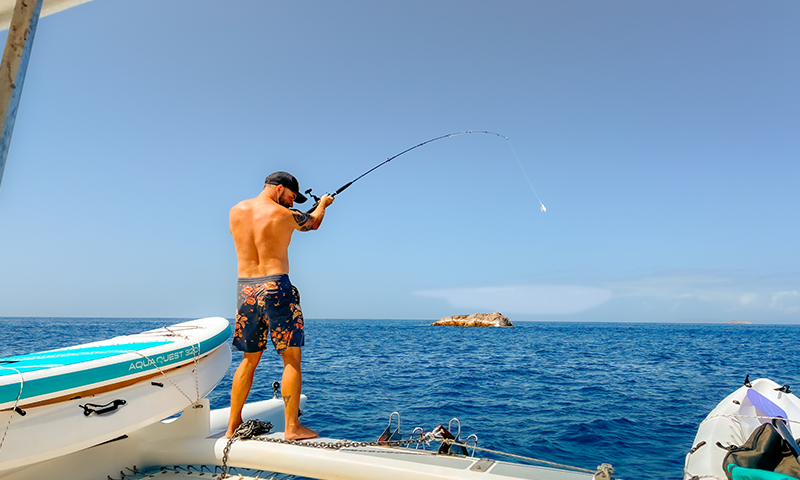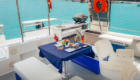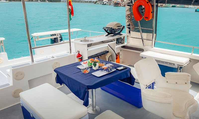 Like all of our charters, The Tramp comes fully crewed with a local skipper, so you can sit back and simply enjoy your time aboard and focus on all the wondrous things that Seychelles offers for you to see and do! With an occupancy of up to 16 guests, who can all enjoy shaded seating thanks to the hard-top bimini, With roll down canopies on the sides of the hard-top bimini, you will be protected from wind and rain if needed.
