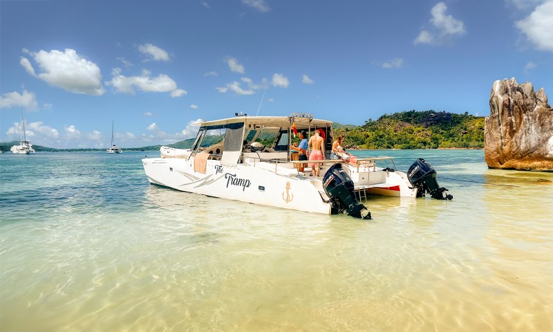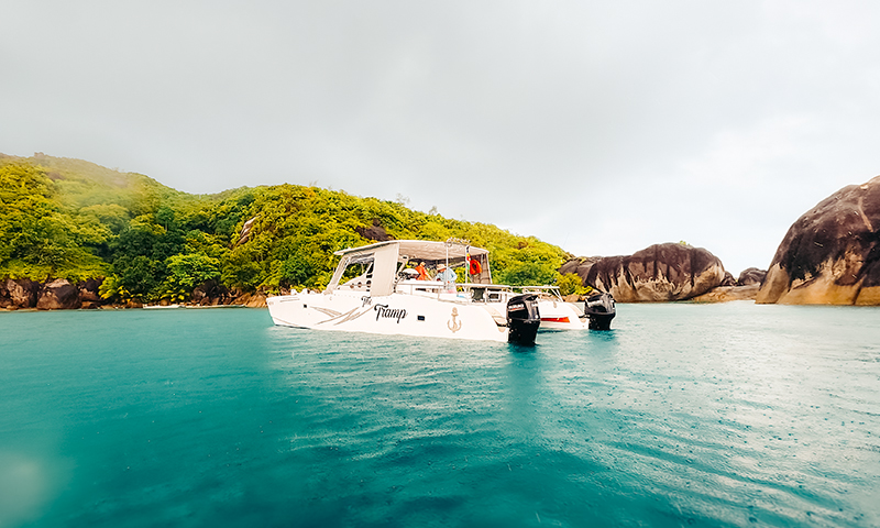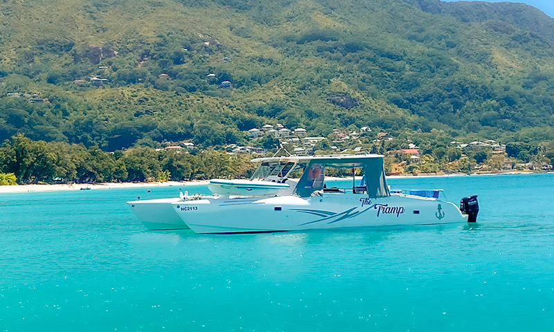 The Tramp is perfect for cruising Seychelles' calm waters on a full or Half-Day charter.